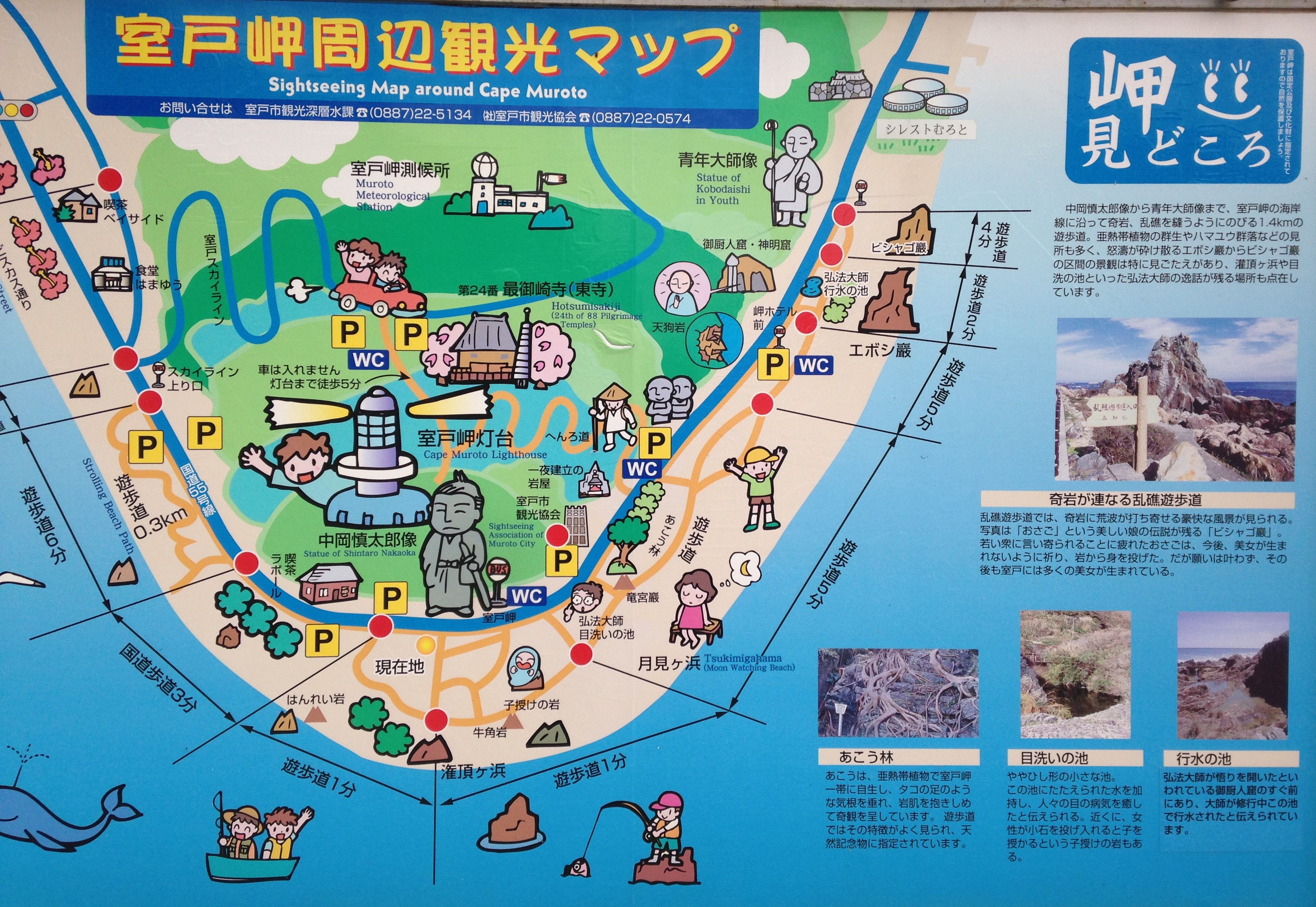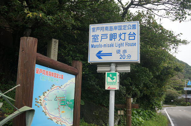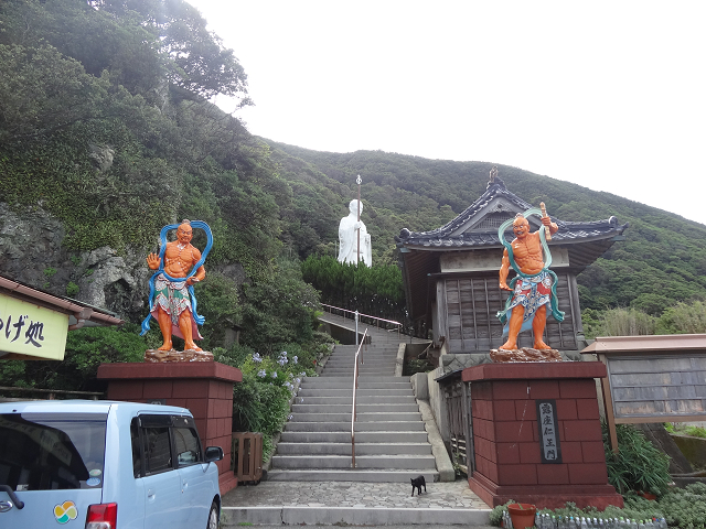 「へんろ道」を上がって灯台と24番札所最御崎寺に行き再び降りてきて御厨人窟から青年大師像から「シレストむろと」まで行く